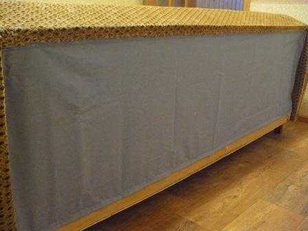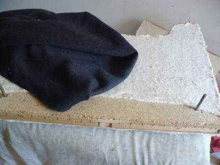 Теперь нам нужно сшить чехлы на боковины и надеть их на место, предварительно обернув боковины синтепоном.