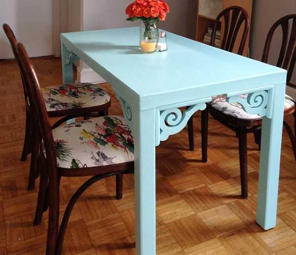 Предлагаю тебе идеи для переделки старой мебели, которые могут привести к интересной трансформации. Почему бы не расписать обеденный стол акриловыми красками? Тем более что столу уже 20 лет, да и талант художественный у тебя имеется.