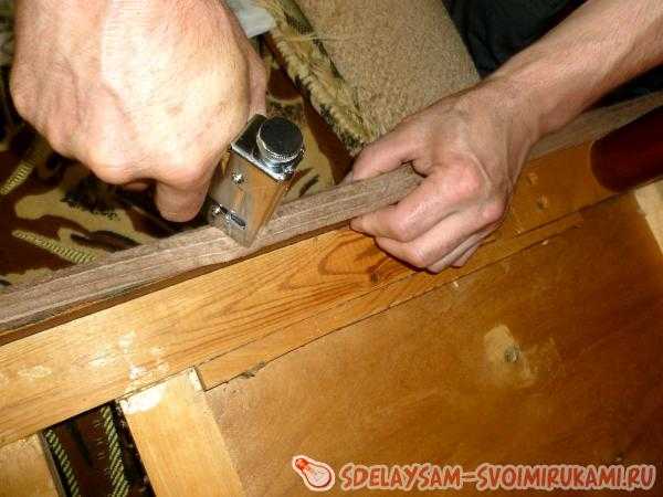 Разбираем основной каркас дивана, для того, чтобы заново надежно их склеить.