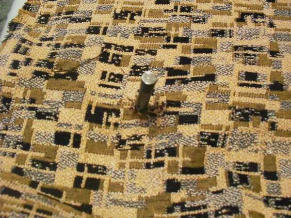 Ткань, закрывающую внутреннюю часть головки прорезаем в месте нахождения болта.