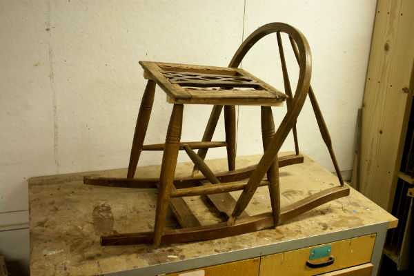 Многие мечтают о кресле-качалке, а ведь ее можно изготовить из ненужного стула. Для этого необходимо заказать у плотника полукруглые перекладины или снять несколько дощечек с деревянной бочки, и закрепить на них стул.