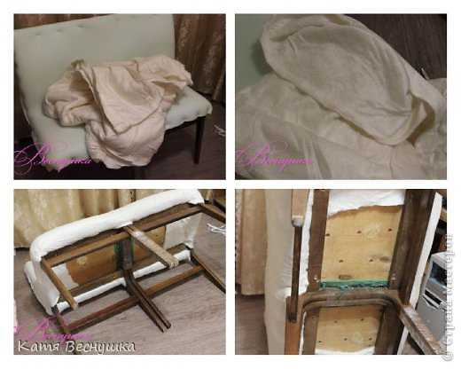 На установленные в ряд три стула без сидений можно уложить доску, обитую приятным на ощупь материалом с прослойкой из поролона. Различные варианты импровизированных скамеек можно изучить на фото ниже.