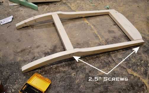 Классическое кресло должно быть с “ушами”. Для их изготовления подготовьте для каждой стороны доску и брусок той же толщины. Изучите все фотографии процесса изготовления “уха”. Соедините заготовки саморезами, затем нарисуйте закругление и выпилите по линиям. Готовую сборку закрепите к спинке и подлокотнику.