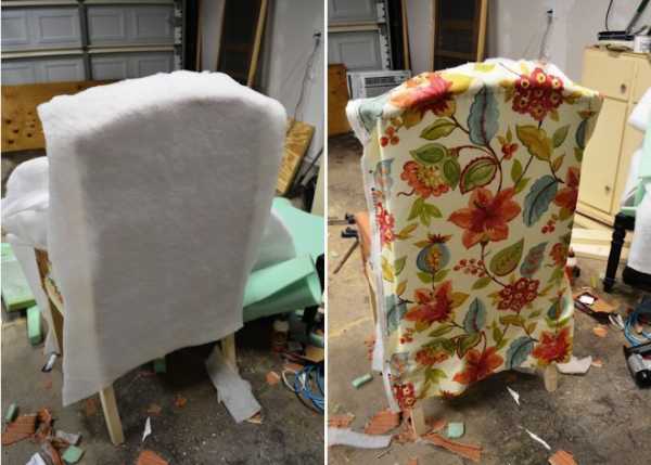 Наконец мы добрались и до спинки. Используем тот же поролон (толщиной 25 мм), синтепон и проходим все такие шаги, которые были сделаны с подлокотниками, боковинами.