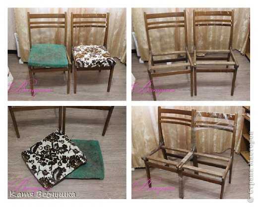 Первым делом, нам нужно разобрать два стула по деталям. Так проще сделать из них одно целое.