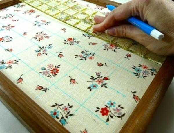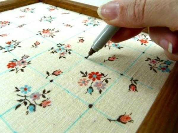 Похожий вариант можно сделать, используя ткань у стенки рамки. На ткани нужно начертить линии и накрыть стеклом.