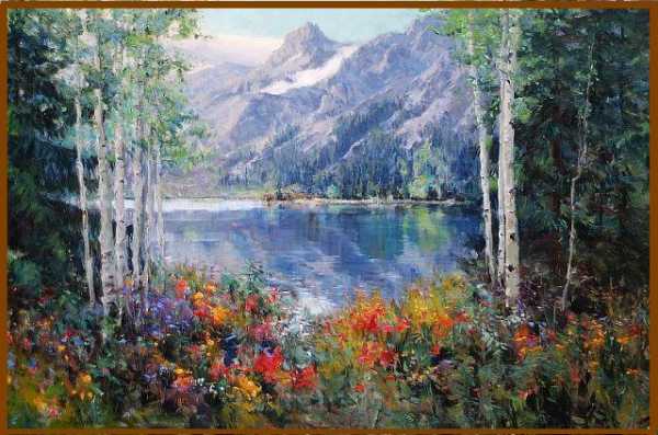 Я для своего скромного интерьера часто подбираю понравившиеся картинки в интернете, печатаю на цветном принтере и вставляю в рамочку. Очень люблю пейзажи современных художников.