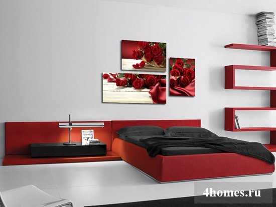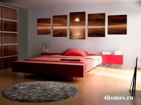 Главным условием комфортного отдыха в спальне является создание подходящей расслабляющей обстановки. Модульный декор для этой комнаты следует подбирать, исходя из общего дизайна помещения, но обязательно избегать перенасыщения яркими оттенками.