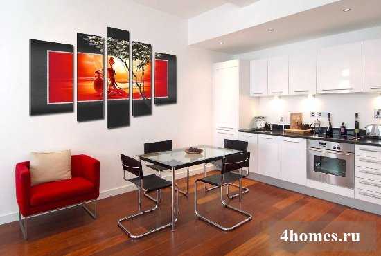 Мне очень нравятся такие стильные модульные картины в интерьере.