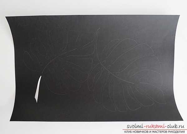 Нарисовать рисунок на черной бумаге и с помощью канцелярского ножа вырезать его. Рисунки можно рисовать как от руки, так и использовать шаблоны, взятые, например, в интернете и распечатанные на принтере.