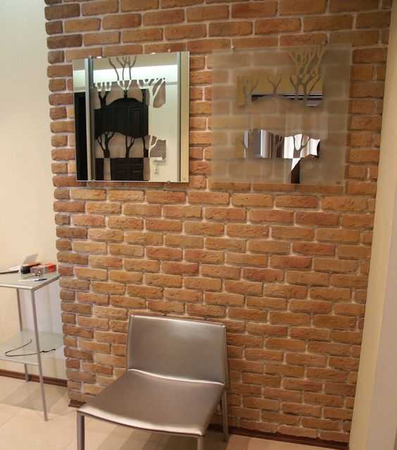 Привлекающая взгляд внутренняя отделка стен под кирпич набирается из отдельных элементов (виниров), которые могут быть сделаны из самых разных материалов: глины, дерева, пластика, кожи, пенополистирола, стекла, бумаги.
