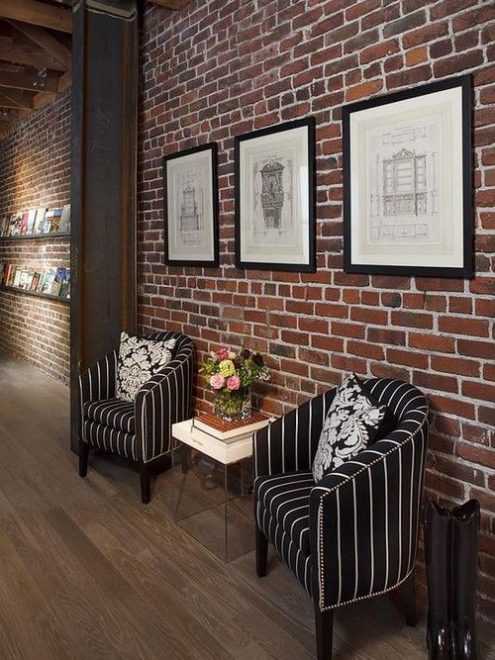 Интерьер с кирпичной стеной