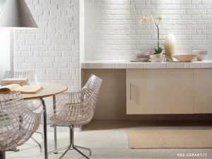Светлая кирпичная кладка никогда не привнесет в помещение холодной готичности и мрачности, вместо этого она способна создать солнечное настроение и оживить пространство. Белый кирпич отлично сочетается с любым видом дизайна и, дополненный необходимыми аксессуарами, смотрится очень благородно.