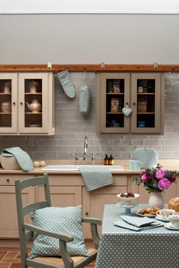 При оформлении кухни в стиле «а-ля французская деревня» необходимо учитывать то, что вся тканевая составляющая дизайна должна быть поистине натуральной. Подойдет лен, хлопок, мохер и другие материалы, которые приятны на ощупь и не режут глаза. Как сделать уютной кухню? Для придания торжественной атмосферы помещению можно использовать текстильные полотна спокойных, пастельных тонов. Соответственно, мебель должна выглядеть подобающе и не выбиваться из общего убранства.