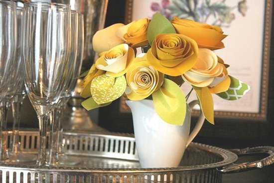 Из бумажных цветков можно делать оригинальные панно и композиции, ведь на дальнем расстоянии они практически не отличаются от живых. Еще цветы из цветной бумаги отлично подходят для украшений рамочек фотографий, открыток, коробочек для подарков и шляпок. Очень часто они используются для оформления праздничных залов перед всякими торжествами, комнат и праздничных столов. И такие поделки подарят каждому человеку праздничное настроение и радость.