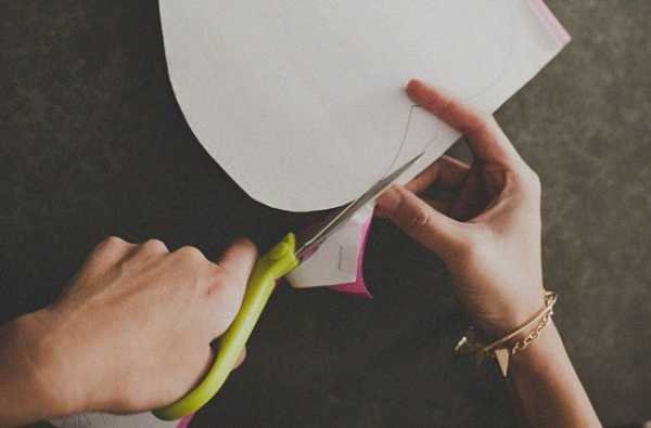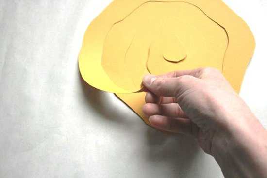 Сначала распечатайте (если вы брали его из Интернета) и потом вырежьте шаблон. Потом складываете бумагу несколькими слоями, для большого цветка должно быть 10-15 слоев. Приколите шаблон к бумаге при помощи булавок.