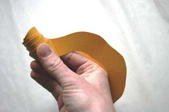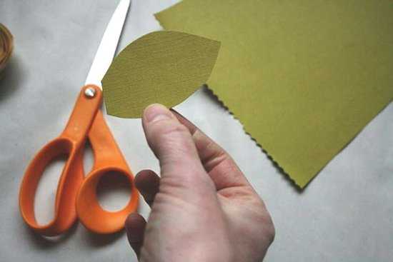 7. У основания каждого листочка сделай изгиб. Склеив основу в месте сгиба, придай листочку характерной формы: один край заверни вверх, другой — вниз.