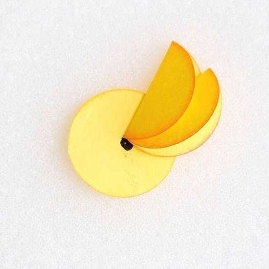 3. Укладывая заготовки-лепестки друг в друга, приклей их к кружочкам соответствующего цвета с обозначенной серединкой.