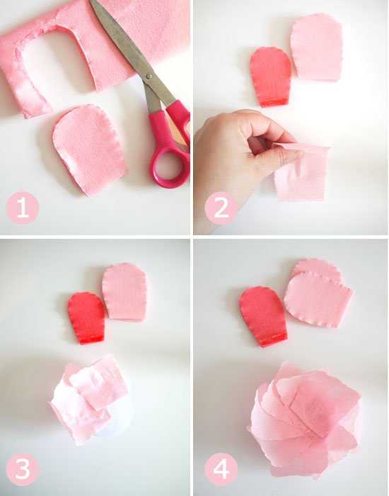 - Чтобы сделать цветы своими руками, достаточно совместить несколько заготовок и скрепить их в форме цветка.