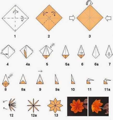Скромные и колоритные, нежные и роскошные – экзотические и обычные полевые цветы всегда были и будут символом красоты. Человек всегда хочет получить для себя кусочек природы и поэтому делает бумажные цветы. Если вы владеете техникой оригами, цветы из бумаги у вас получатся просто шикарными. Лепесточки такого цветка обычно складывают из одного бумажного листа, и такие поделки воплощают в себе восточное восприятие гармонии единства, которая выражена в многообразных формах. Техника оригами позволяет создать объемные и оригинальные цветы, и смотрятся они впечатляюще. Схем цветков из бумаги в стиле оригами очень много, но если вы занимаетесь таким делом впервые – лучше всего выбрать схему самую простую.