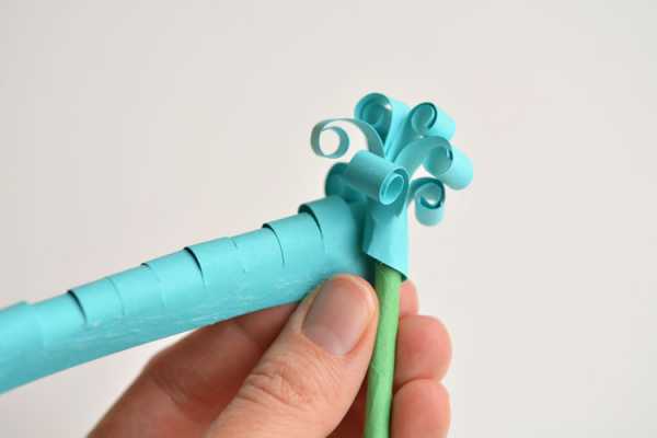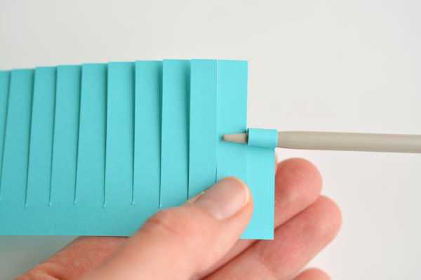 - Каждый лепесток накрутить на карандаш по длине и подержать в таком положении некоторое время. Не раскрывая лепесток, вынуть карандаш.