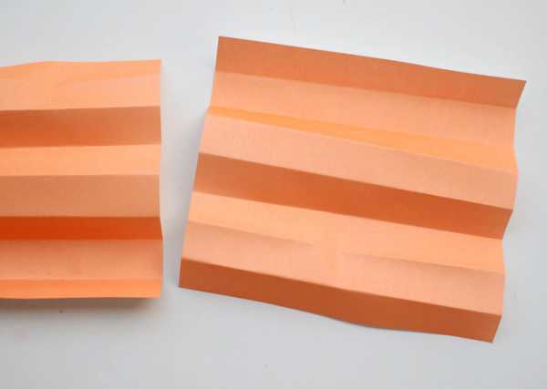 - вырезанные слои сложите все вместе ровной стопкой и сделайте из них «гармошку», складки которой составляют примерно два сантиметра в ширину;