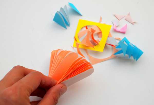1. Из отрезков цветной бумаги разных размеров и цветов вырежи заготовки для цветочков.