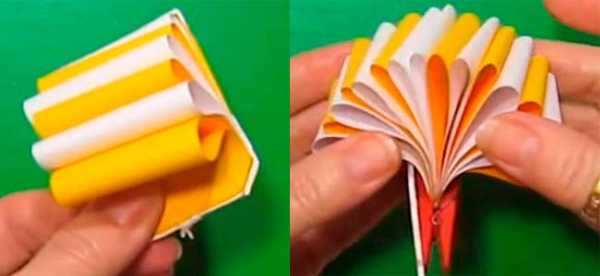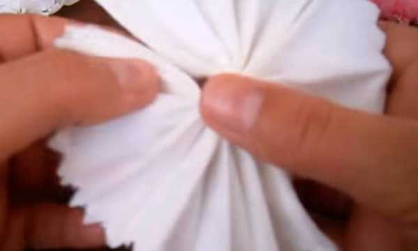- зафиксируйте «гармошку» в центре колечком. Если вместо кольца используется пуговица — закрепляете ниткой, а потом на это место приделайте пуговицу;