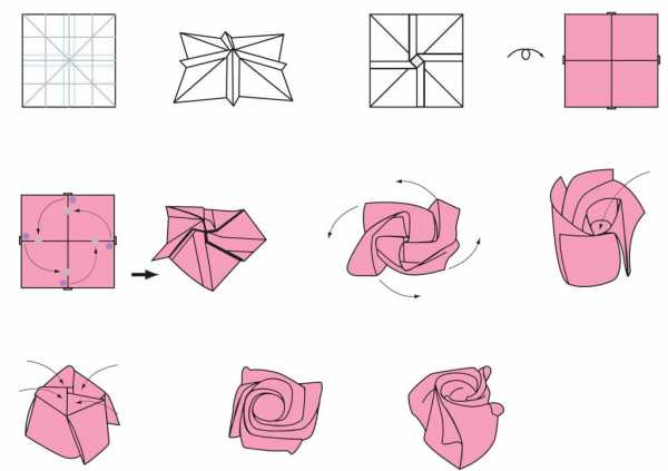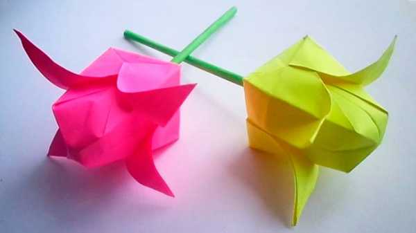 Этот метод складывания цветка по схеме оригами намного проще, чем вышеуказанная розочка и придется потрудиться меньше. Если вы хотите узнать, как сделать этот цветок-поделку из бумаги, то ваши действия следующие: