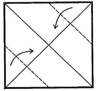 У вас выйдет квадрат с усеченными углами, сложим его пополам два раза, и затем разверните листок. Обратные друг другу середины сторон соедините вместе. У вас должна получиться интересная фигура.