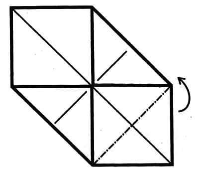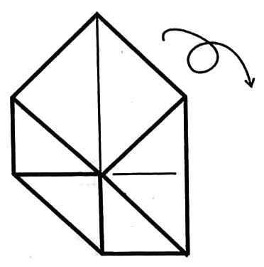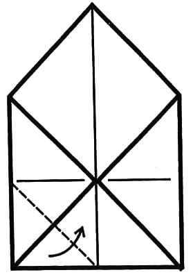 - складываете нижние левый с правым углы алмаза к складке центральной и в конечном итоге должен выйти своеобразный воздушный змей. Алмаз переворачиваем и все действия повторяем;