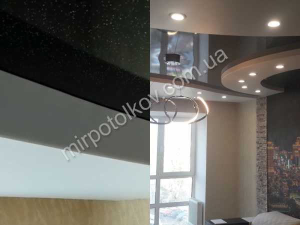 - Установка самого чистового натяжного потолка. Здесь может применяться глянцевое полотно или матовое, причем на поверхности может быть уже напечатанным ночное небо, для создания лучшего эффекта.