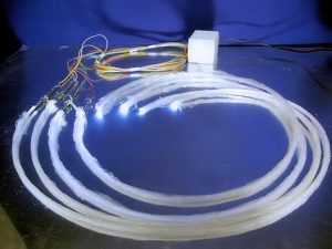 Диаметр оптического волокна составляет всего 0,75 мм, однако большая пропускная способность света позволяет получить на его конце очень яркое свечение. При этом волокно практически не нагревается.