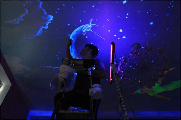 Покраска потолочного полотна люминесцентными или люминофорными красками