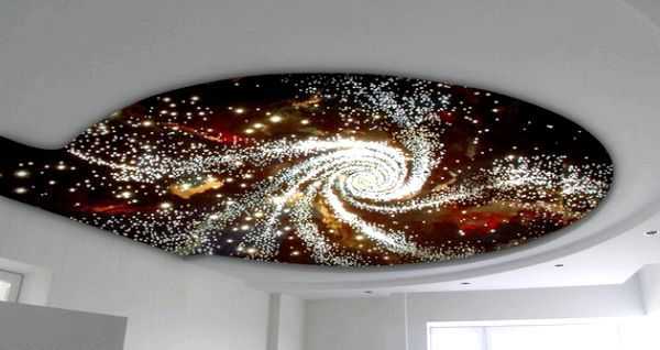 В основе этих эффектов и эффекта облака находится два составляющих – оптическое волокно и свет. Для получения нужных эффектов используются сотни оптических нитей. Они пронизывают буквально всю поверхность, в результате чего создаются космические картины. Подобный потолок можно сделать самостоятельно. Для этого можно использовать гипсокартон.