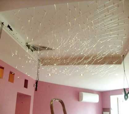 Полезный совет: Если вы не хотите использовать устройства для рассеивания света, то тогда поверхность потолка должна быть прочную и толстую структуру, чтобы при дневном освещении не было заметно нитей звездного неба.