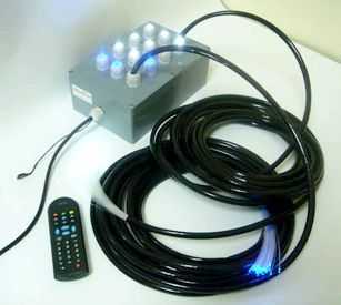 В качестве источника света используют специальные светогенераторы и оптоволоконные нити. Существуют готовые комплекты для монтажа звездного неба из одного генератора и 150 волосин оптоволокна. Они, конечно, же отличаются ценой, качеством, набором функций и режимов, наличием пульта управления и другими характеристиками. Цвет звезд может быть только белый, может быть RGB — цветные, могут динамически менять цвет, яркость свечения, может быть режим плавного загорания и затухания всех звезд. В общем, любой каприз и ваше звездное небо совершенно неповторимо!