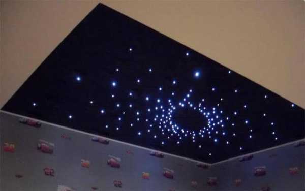 Потолки звездное небо с использованием оптоволокна. Такая технология предполагает, что звездочками будут маленькие светящиеся точки, диаметром 0,25 мм. Это приблизительно как рыболовецкая леска в разрезе.