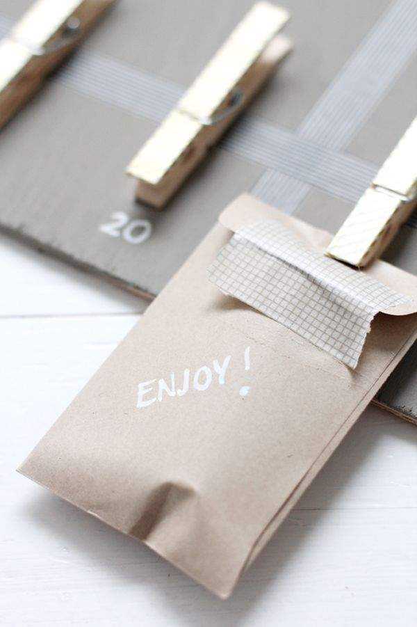 Белым маркером напишите дату, и к каждой прищепке (или некоторым прищепкам) можете прикрепить небольшой подарок.