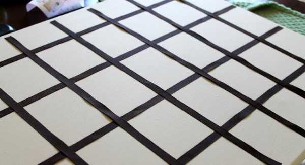 1. С помощью атласной ленты или скотча разделите полотно на несколько ячеек.