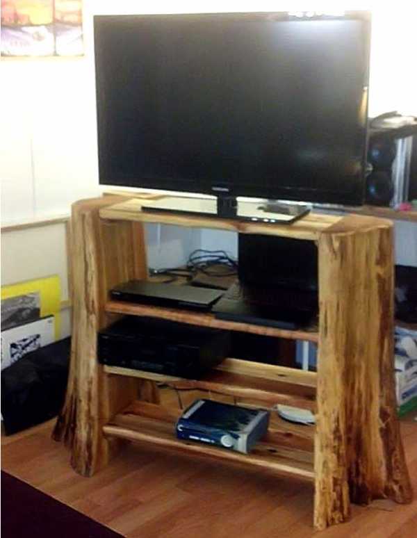 Натуральный массив. Этот материал ценится во все времена за свою натуральность и благородность. Сделать тумбу под телевизор можно из любой породы деревьев.