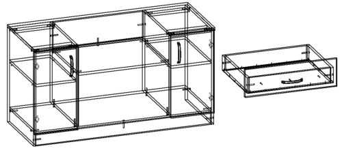- Сборку начинают с верхней полки – или столешницы. Ее фиксируют на боковины или на ножки. Затем устанавливают нижнюю полку, а потом элементы наполнения – третья полк, перегородка и так далее.