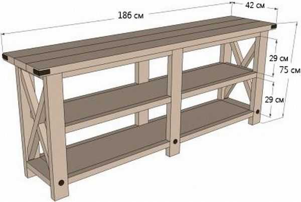 Проще всего воспользоваться готовым чертежом, особенно если есть уверенность, что изделие по нему изготавливалось и эксплуатировалось. Предварительно, разумеется, нужно убедиться в том, что размеры тумбы подходят к габаритам телевизора, а также колонок, приставок, модемов и прочего.