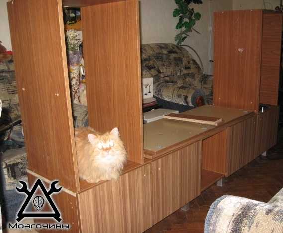 Внутреннюю стенку убирать не следует, потому что она придает конструкции дополнительной стойкости, не давая ей прогибаться под весом телевизора.