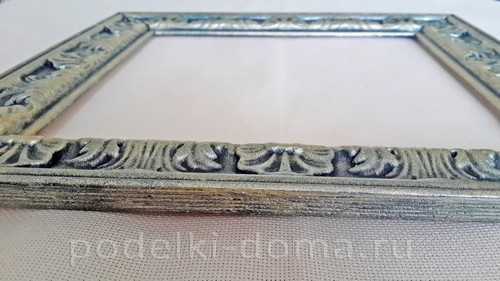 8. Затем сухой ветошью стираем по рельефу краску. Создаем потертость рамы.