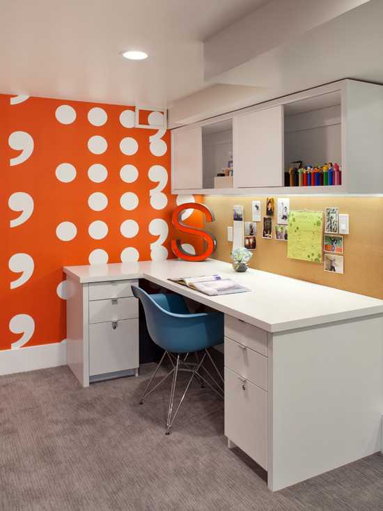 «Хаотично расположенные буквы на стене будут выглядеть достаточно контрастно, чем непременно оживят унылость обстановки»