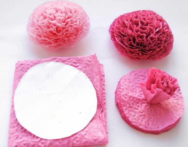 Также из гофрированной бумаги можно сделать цветы и бахрому. Не менее привлекательно смотрится оформление выполненное цветами из салфеток.