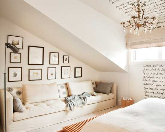 оформление стены и мансардного потолка надписями