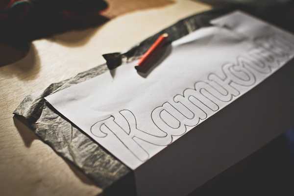 - Первое — продуманный трафарет букв или слова, если вы захотите вырезать его целиком.