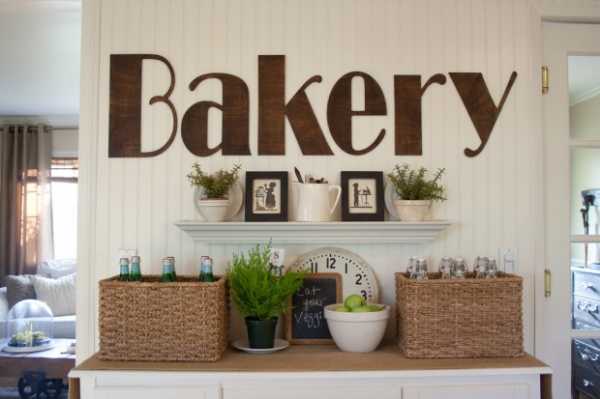 слово из букв на стене в интерьере кухни